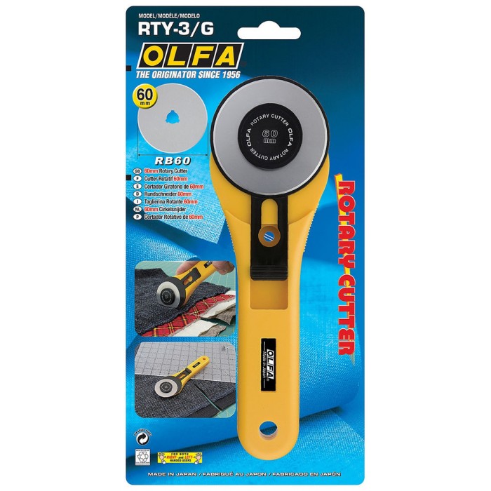 Круговой нож OLFA RTY-3/G с прямой рукояткой — это оригинальный резак в классическом дизайне OLFA. Продуманный дизайн и конструкция делают его идеальным инструментом для квилтеров, швей, дизайнеров и обычных мастеров.
