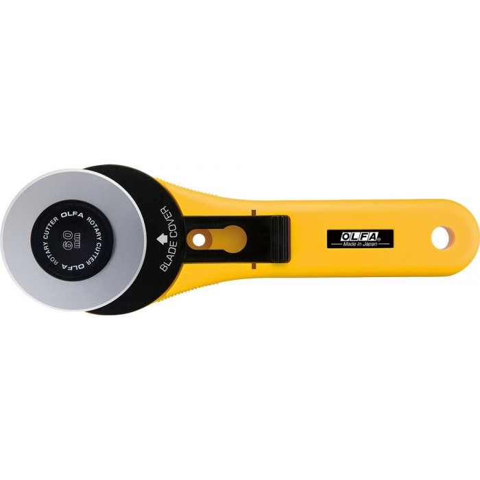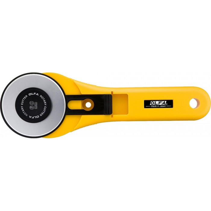 Поставляется с лезвием OLFA RB60, обеспечивающим вдвое больший объем резки по сравнению со стандартным лезвием. Большой диаметр, 60 мм, разрезает до двенадцати слоев хлопчатобумажной ткани за один проход