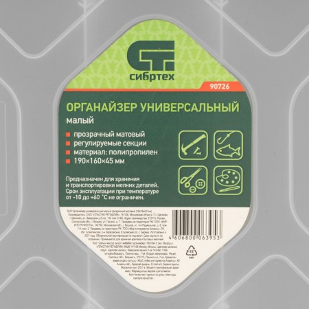 Органайзер универсальный малый, прозрачный матовый 19 х 16 х 4.5 см Сибртех