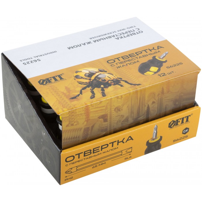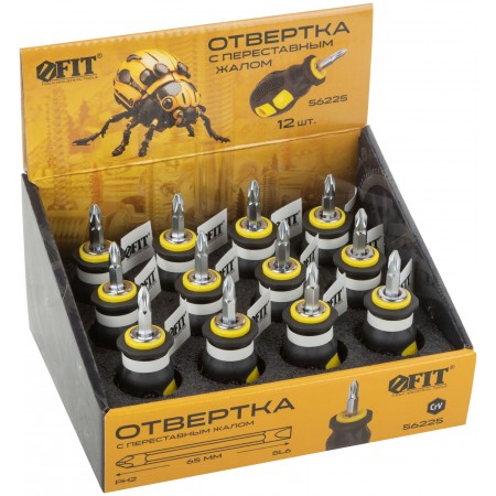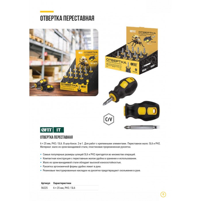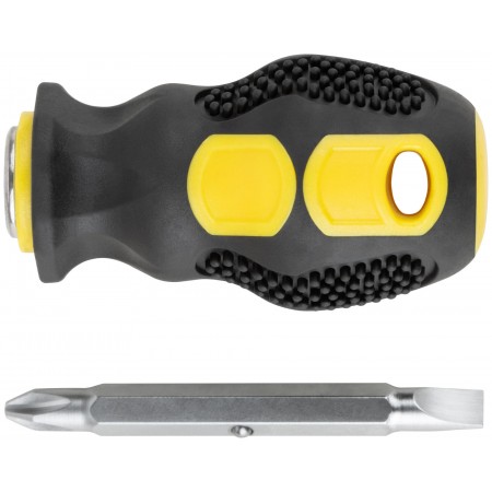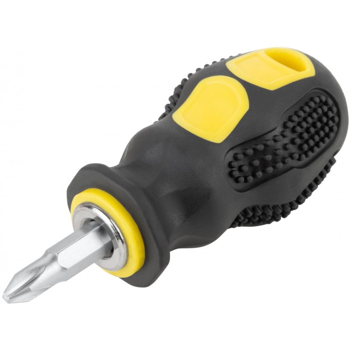 Отвертка c переставным жалом "коротыш", CrV сталь, прорезиненная ручка 6х25 мм PH2/SL6, шоу-бокс (56225)
