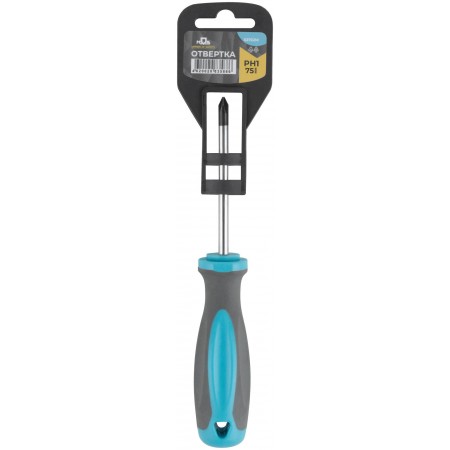 Отвертка, CrV сталь, прорезиненная ручка PH1 x 75 мм (53702М)