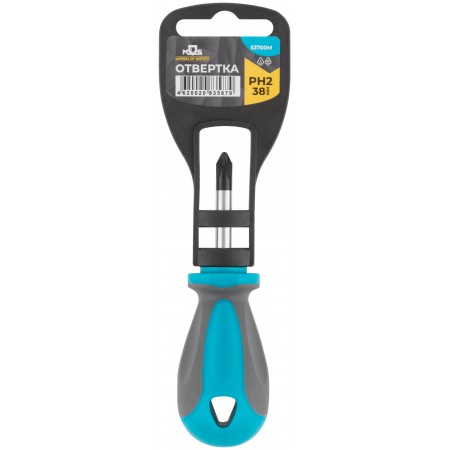 Отвертка, CrV сталь, прорезиненная ручка PH2 x 38 мм (53700М)