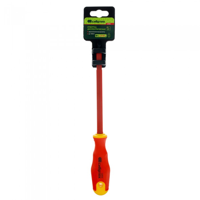 Отвертка диэлектрическая SL6.5 х 150 мм, CrV, до 1000 В, двухкомпонентная рукоятка Сибртех (12935)