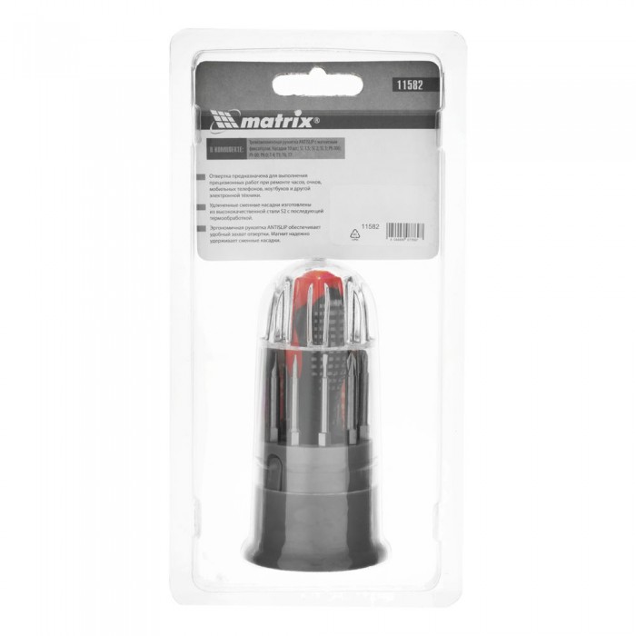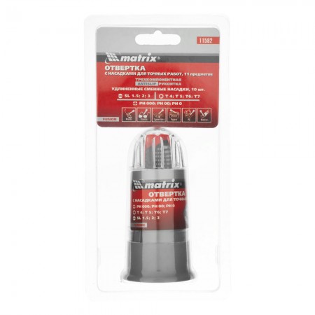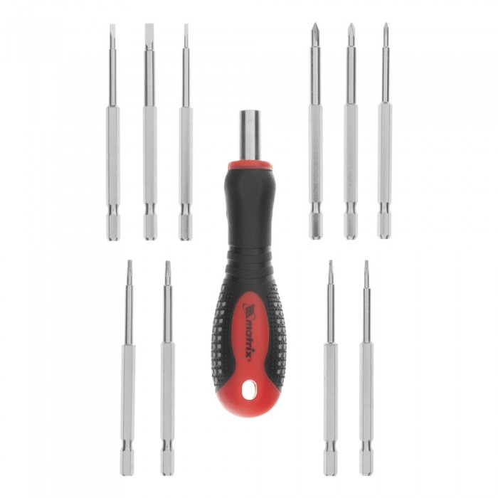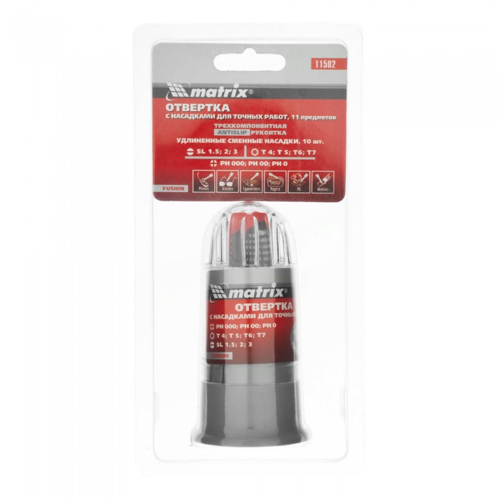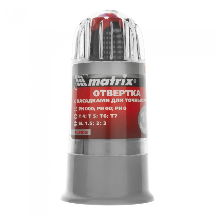 Отвертка для точных работ Fusion с насадками, 11 предметов, в пластиковом пенале, трехкомпонентная рукоятка Matrix