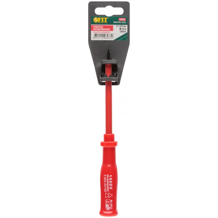 Отвертка изолированная 1000 В, CrV сталь, пластиковая ручка 4х100 мм SL (55802)