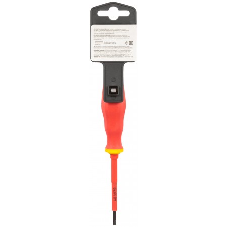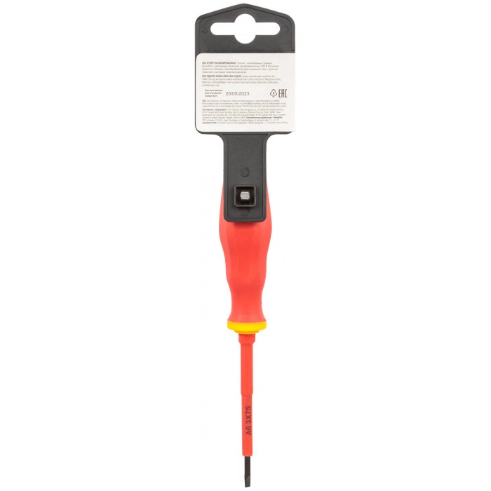 1000 В. Материал: изолированное жало из хром-ванадиевой стали, магнитный наконечник, мягкая прорезиненная ручка. Упаковка: пластиковый подвес.