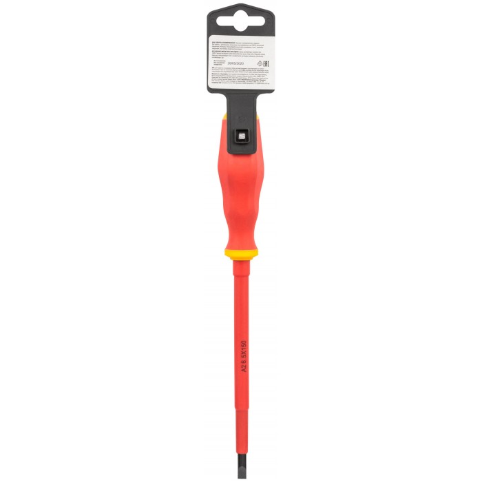 1000 В. Материал: изолированное жало из хром-ванадиевой стали, магнитный наконечник, мягкая прорезиненная ручка. Упаковка: пластиковый подвес.