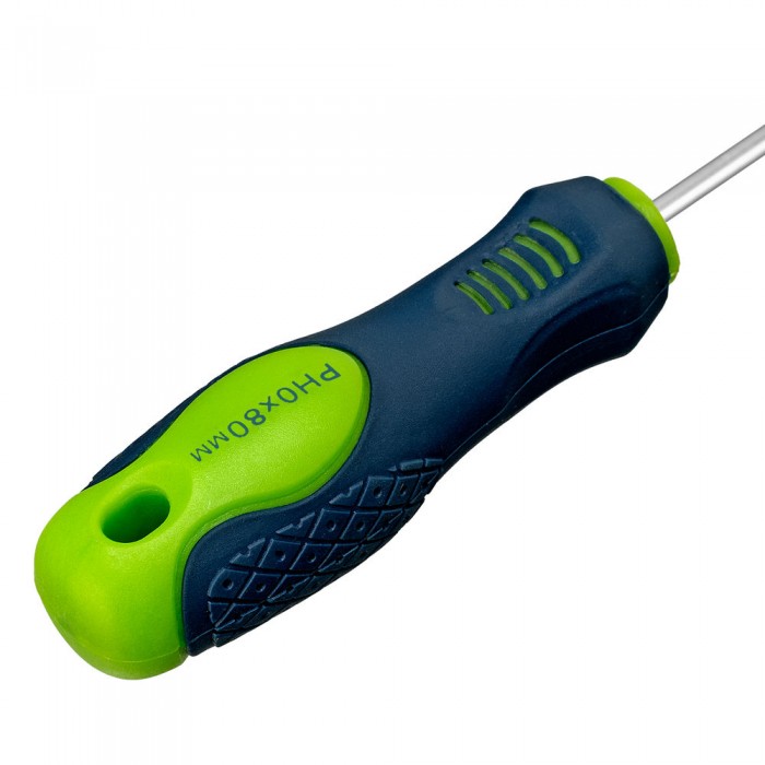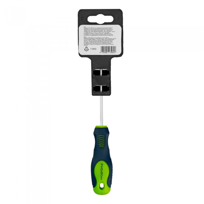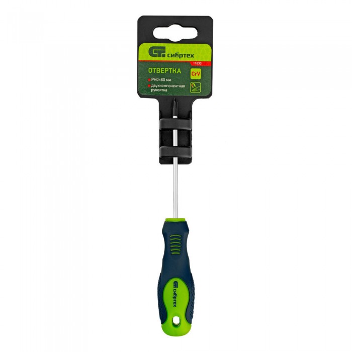 Отвертка, PH0 х 80 мм, CrV, двухкомпонентная рукоятка Сибртех