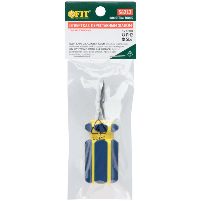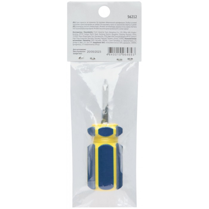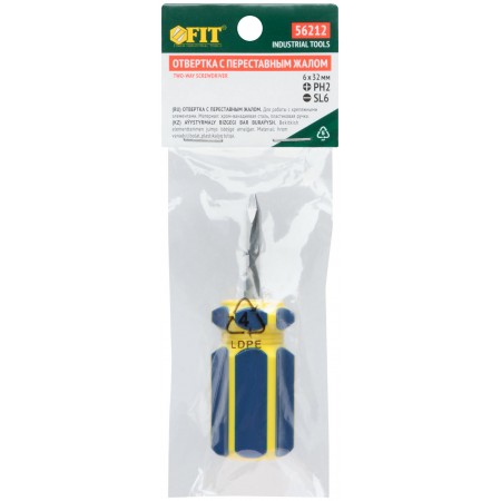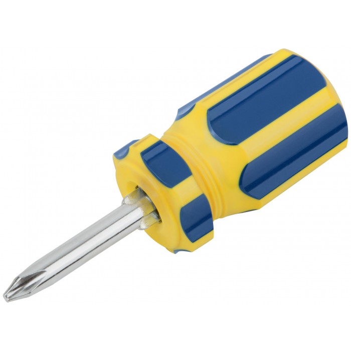 Отвертка с переставным жалом "коротыш", CrV сталь, сине-желтая пластиковая ручка 6х32 мм PH2/SL6 (56212)