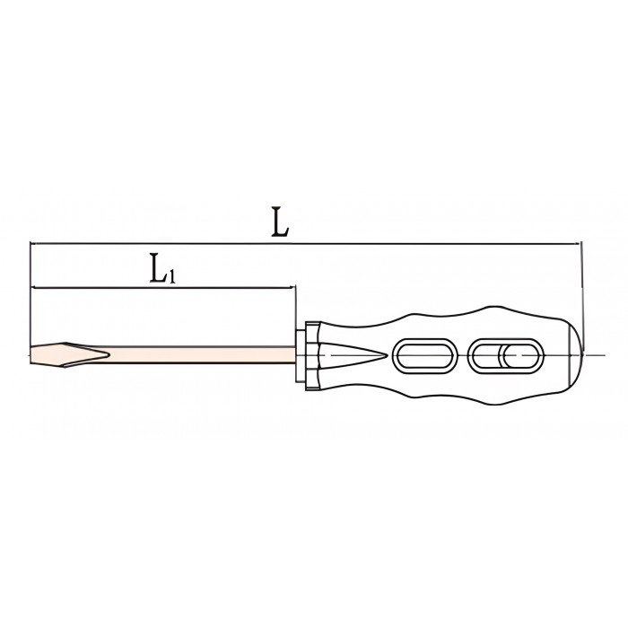 Отвертка шлицевая SL 11х350 (общ.477мм) искробезопасный сплав BeCu 260-1036, HORTZ
