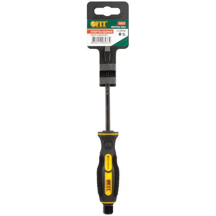 Отверткa ударная, сталь S2, шестигран.жало, боек под ключ, прорезиненная ручка, Профи 5х100 мм SL