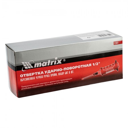 Отвертка ударно-поворотная 1/2, набор бит, 6 шт, черная ручка Профи, пластиковый бокс Matrix