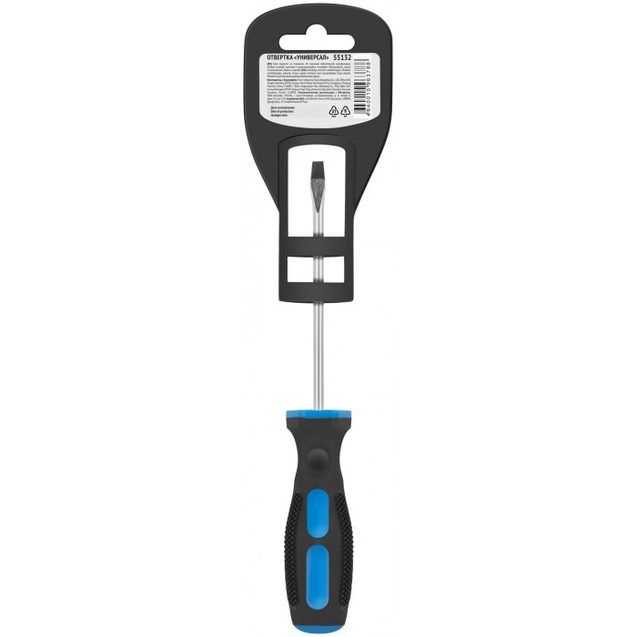 Отвертка "Универсал", CrV сталь, прорезиненная ручка 3х75 мм SL (55132)