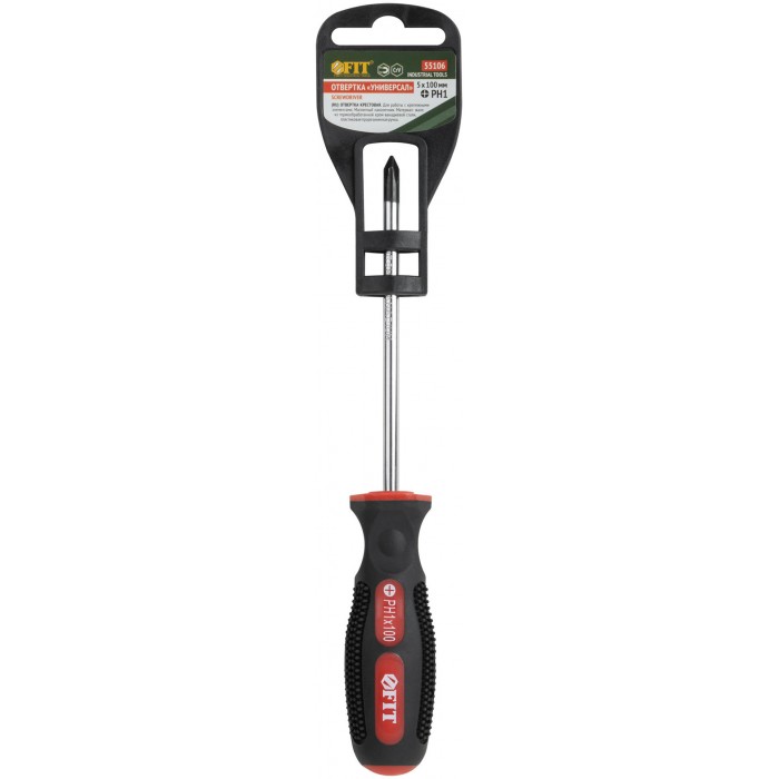 Отвертка "Универсал", CrV сталь, прорезиненная ручка 5х100 мм РН1 (55106)
