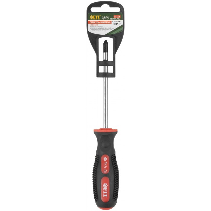 Отвертка "Универсал", CrV сталь, прорезиненная ручка 6х100 мм РН2 (55114)