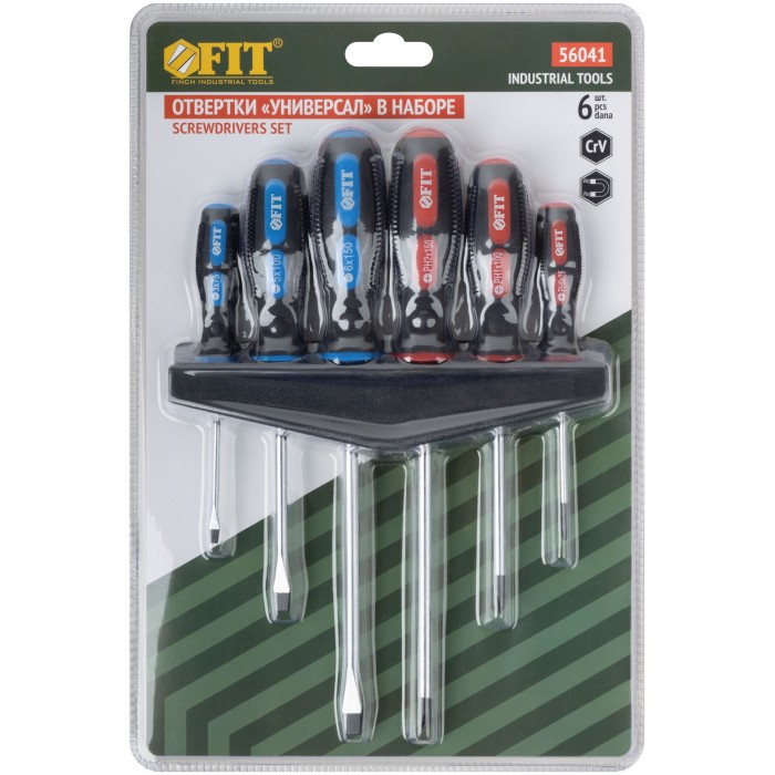 Отвертки "Универсал", CrV сталь, прорезиненные ручки, на держателе, набор 6 шт. (56041)