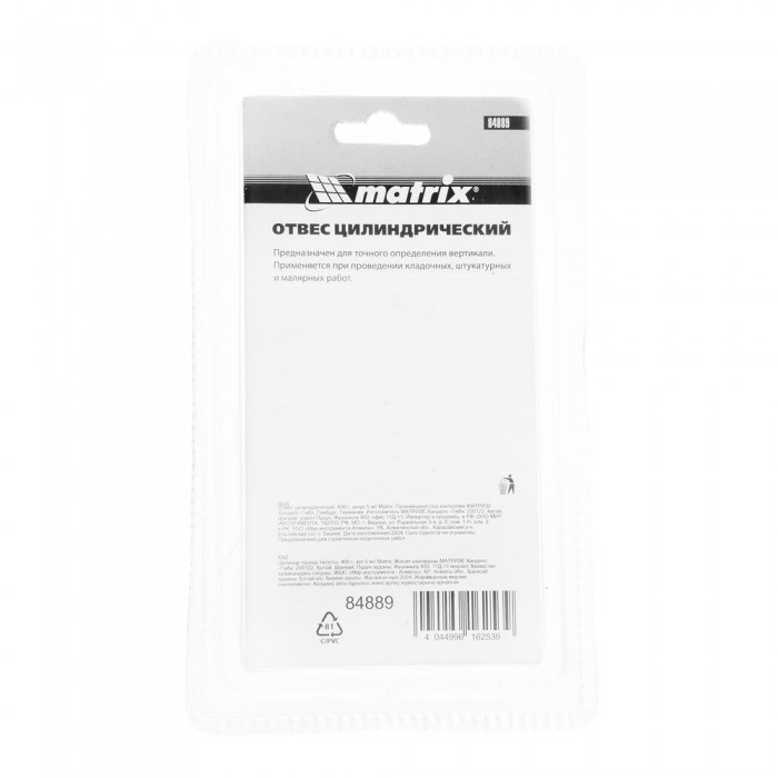 Отвес цилиндрический, 400 г, шнур 5 м Matrix (84889)