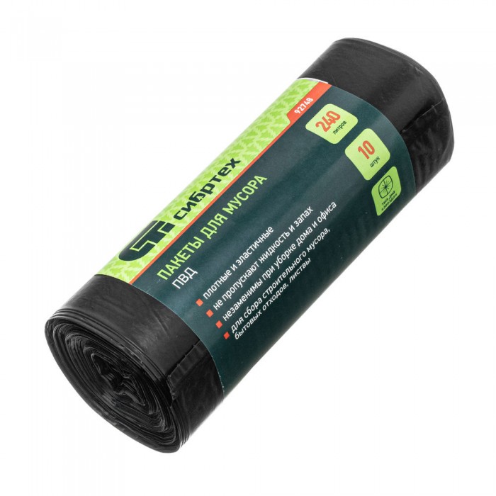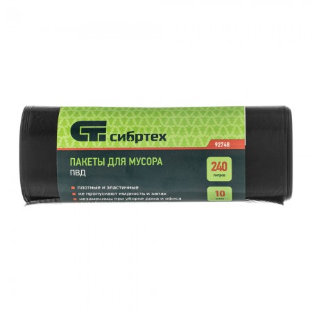 Пакеты для мусора 240 л x 10 шт, пвд, короткий ролик, тип дна "Звезда" Сибртех (92748)