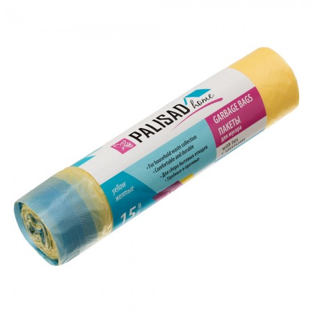 Пакеты для мусора с завязками 35 л x 15 шт. желтые, Home Palisad (927165)