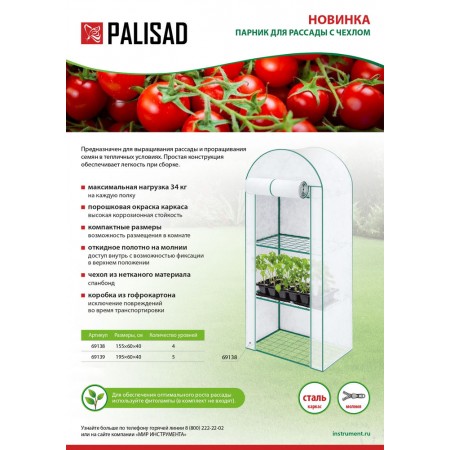 Парник для рассады, 4 уровня, с чехлом, 155х60х40 см Palisad (69138)