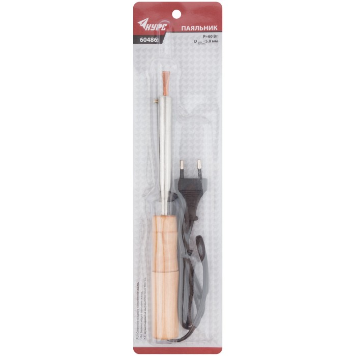Паяльник 220 В, деревянная ручка, плоское жало D=5,8 мм, 60 Вт (60486)