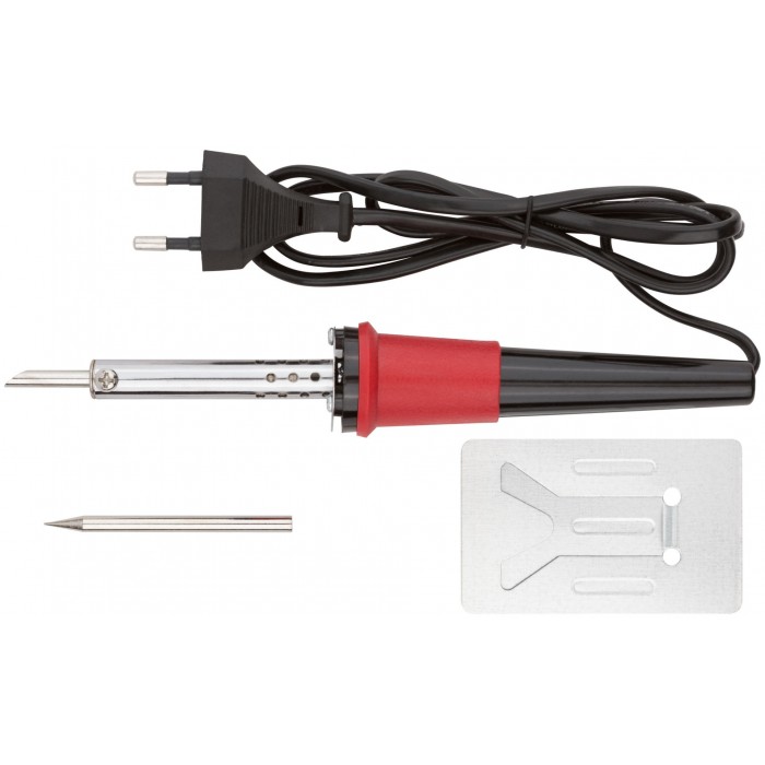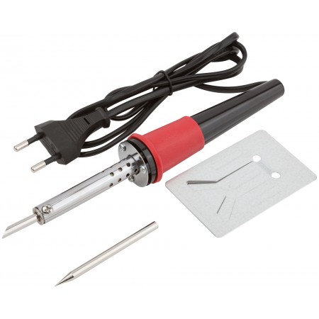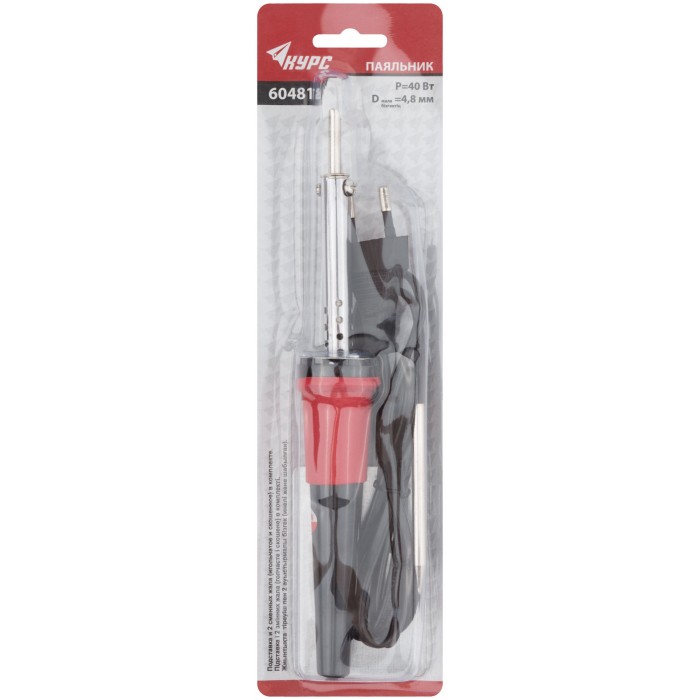 Паяльник 220 В, пластиковая ручка, доп-но подставка для паяльника и два сменных жала, D=4,8 мм, 40 Вт (60481)