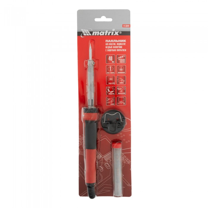 Паяльник, пластик ABS, класс защиты 1, индикатор, медный наконечник с долговечным покрытием, 220 В, 40 W Matrix (913044)