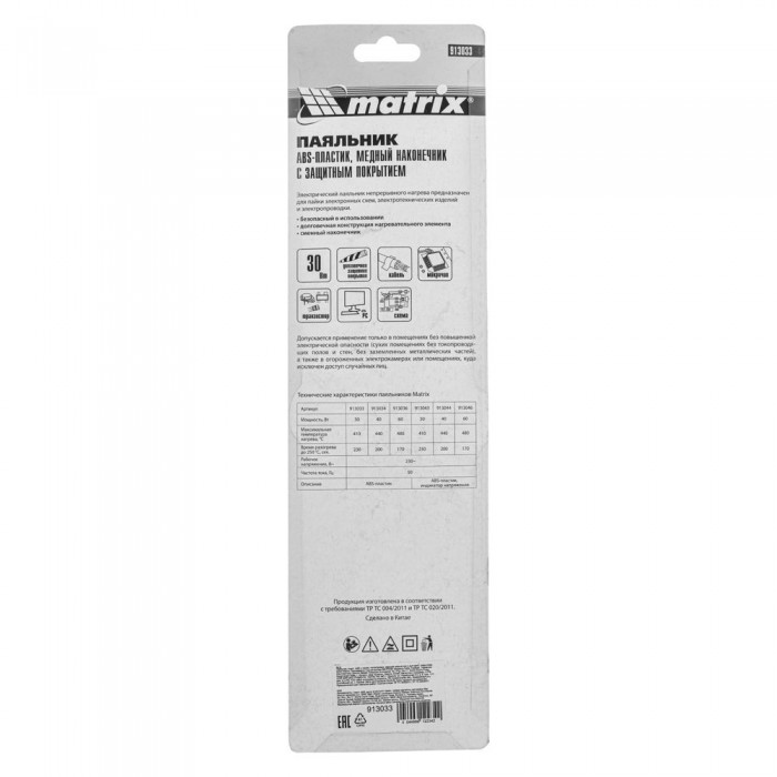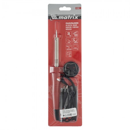 Паяльник, пластик ABS с пониженной теплопроводностью, медный наконечник с долговечным покрытием, 220 В, 30 W Matrix (913033)