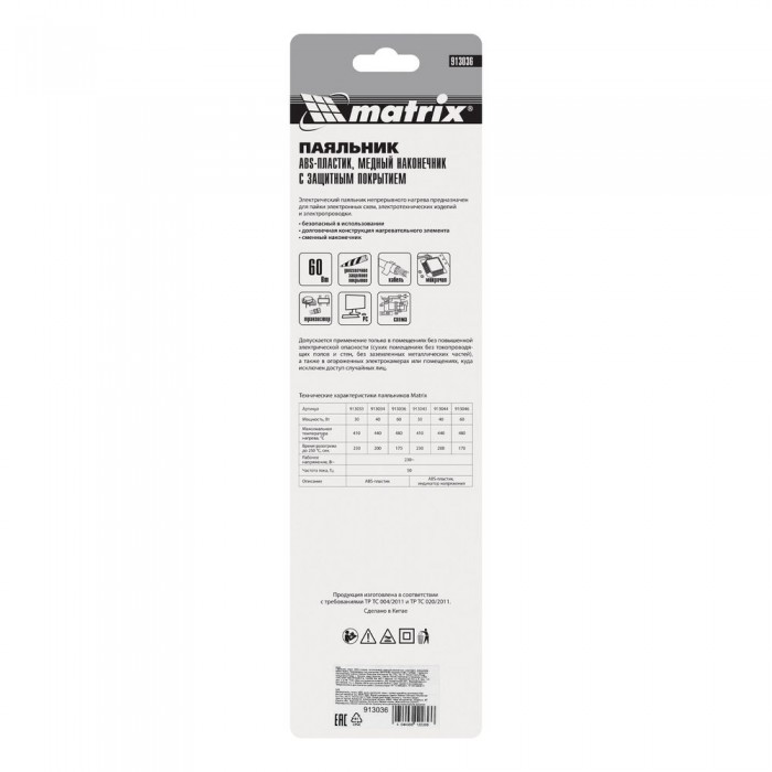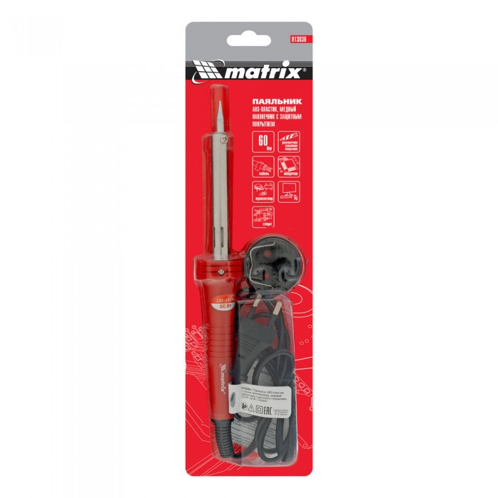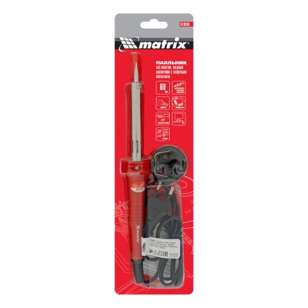 Паяльник, пластик ABS с пониженной теплопроводностью, медный наконечник с долговечным покрытием, 220 В, 60 W Matrix (913036)