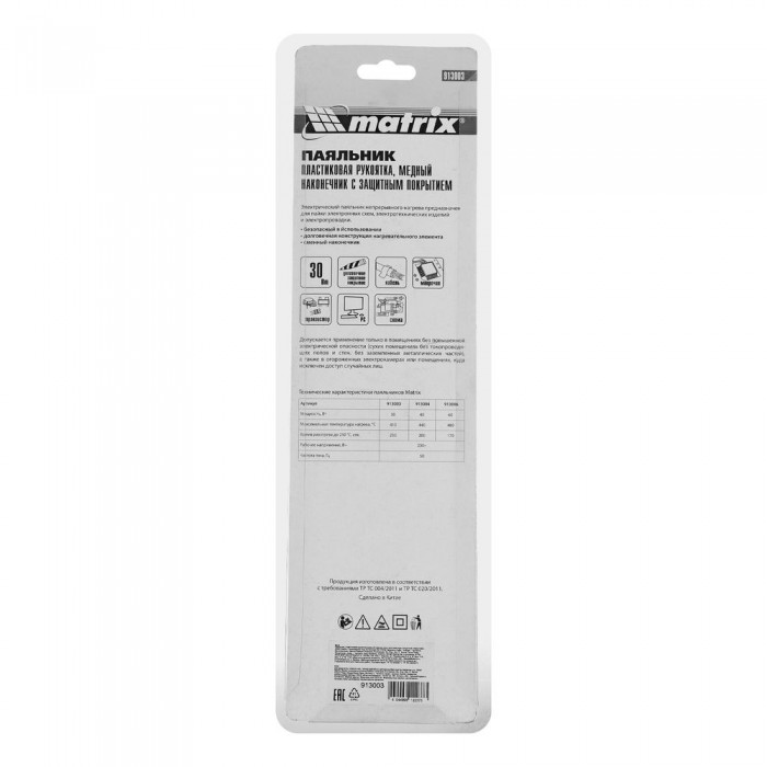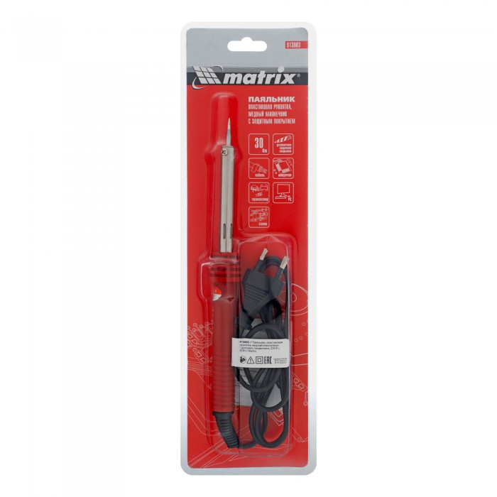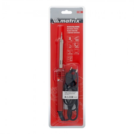 Паяльник, пластиковая рукоятка, медный наконечник с долговечным защитным покрытием, 220 В, 30 W Matrix (913003)