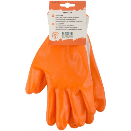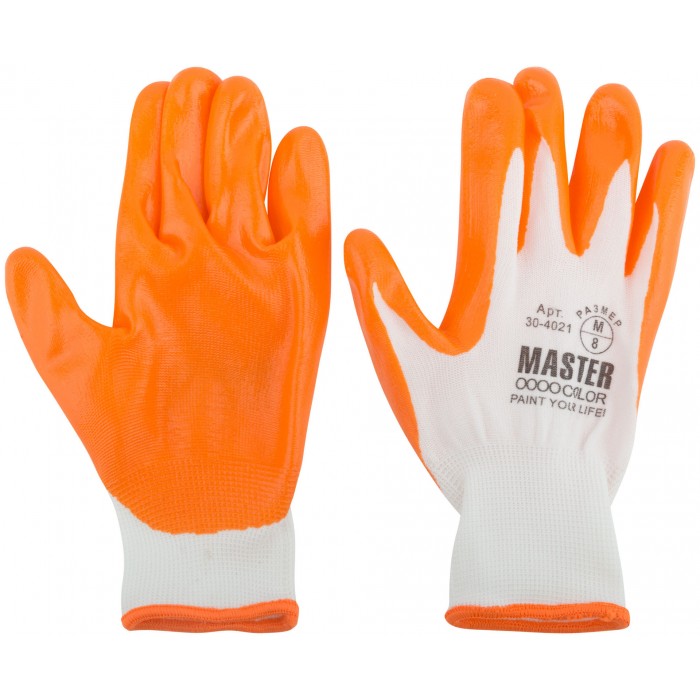 Перчатки белые, полиэстер с обливкой из нитрила (кислото-щелочно стойкие; водоотталкивающие), р-р М/8 (30-4011)