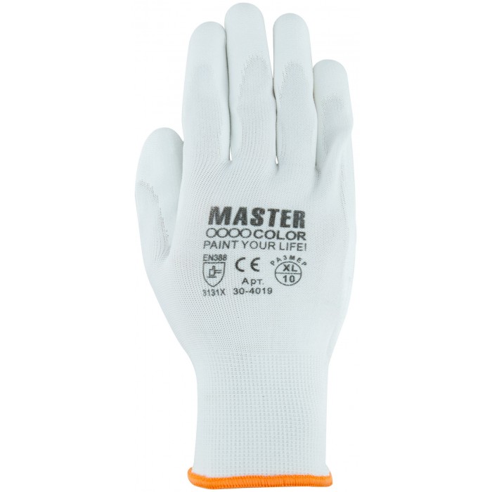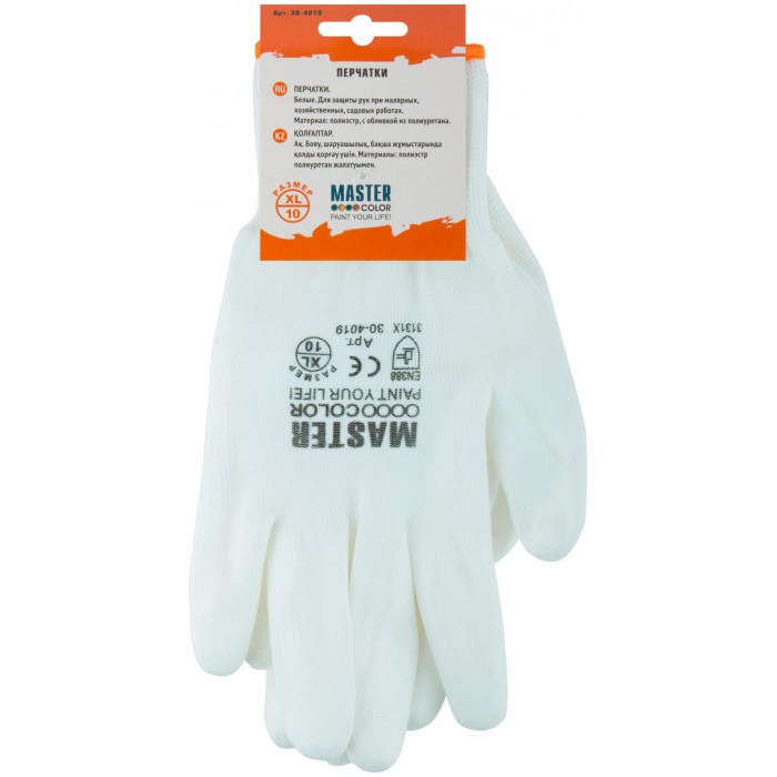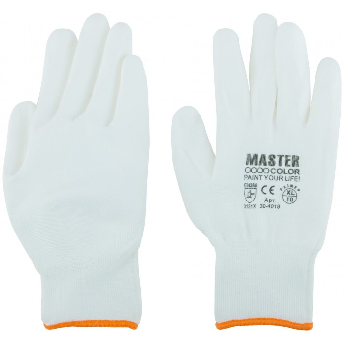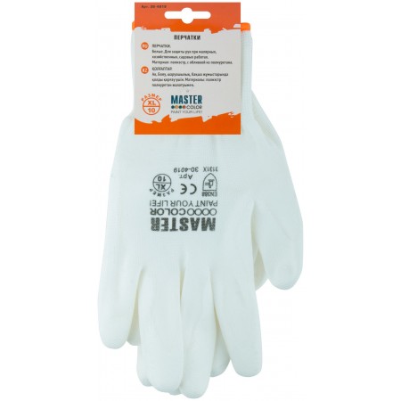 Перчатки белые, полиэстер с обливкой из полиуретана ( водоотталкивающие), р-р XL/10 (30-4019)