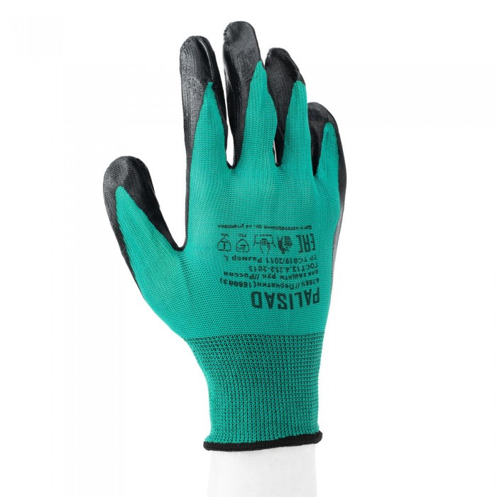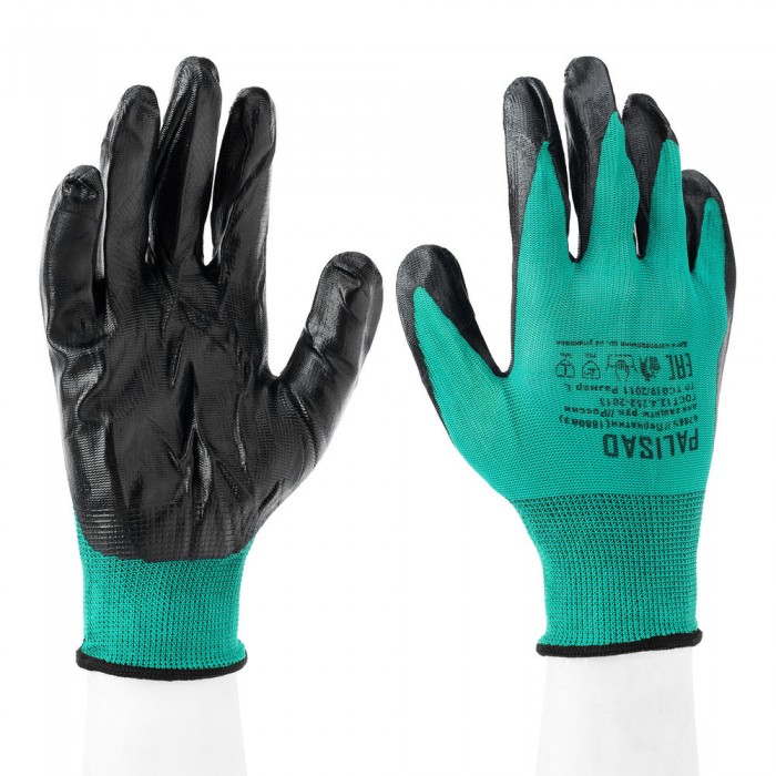 Перчатки полиэфирные с черным нитрильным покрытием маслобензостойкие, L, 15 класс вязки Palisad (67865)