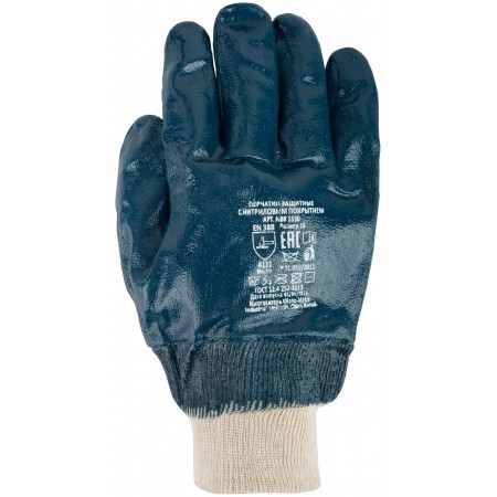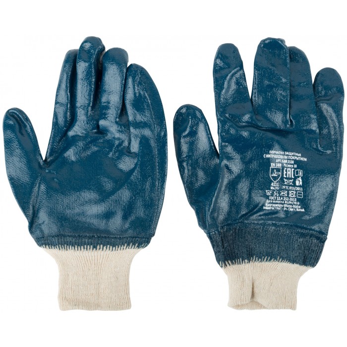 Для работы в агрессивных средах. Кислотно-щёлочно стойкие. Полный двойной нитриловый облив. Материал: х/б основа с нитриловым покрытие.