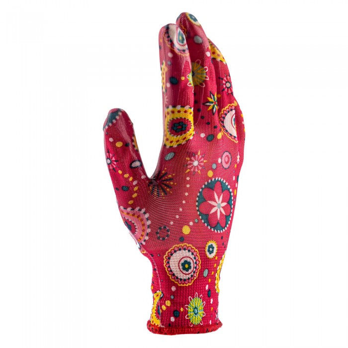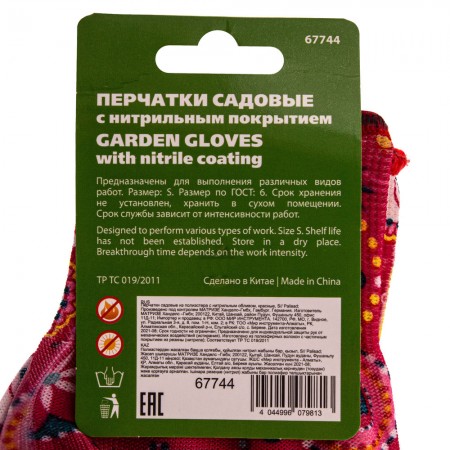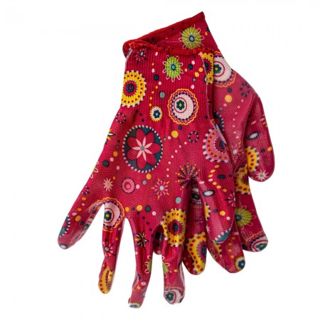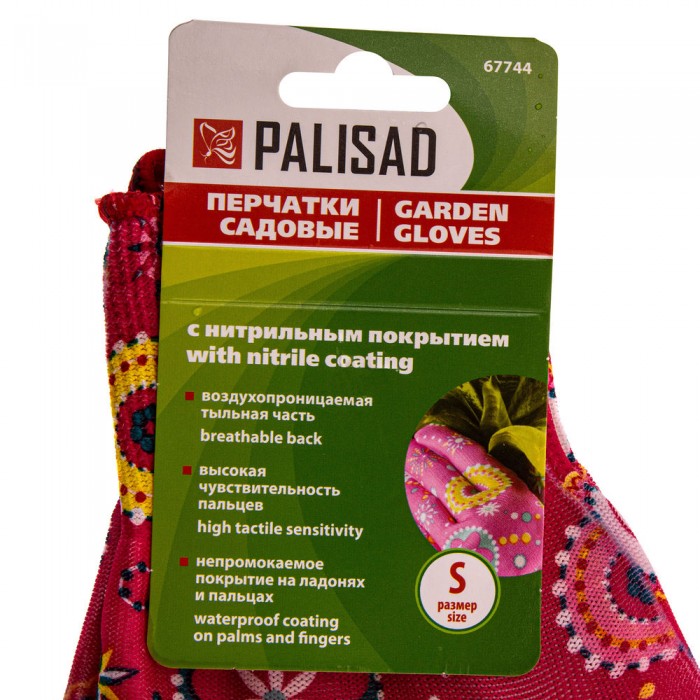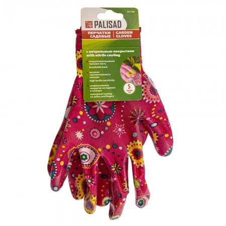 Перчатки садовые из полиэстера с нитрильным обливом, красные, S Palisad (67744)