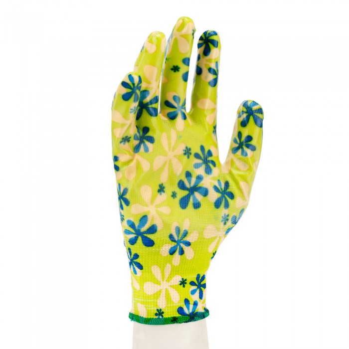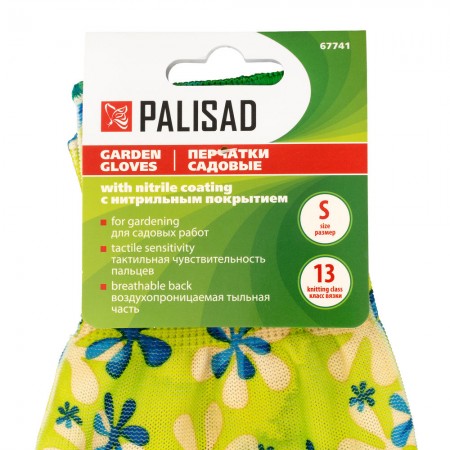 Перчатки садовые из полиэстера с нитрильным обливом, зеленые, S Palisad (67741)