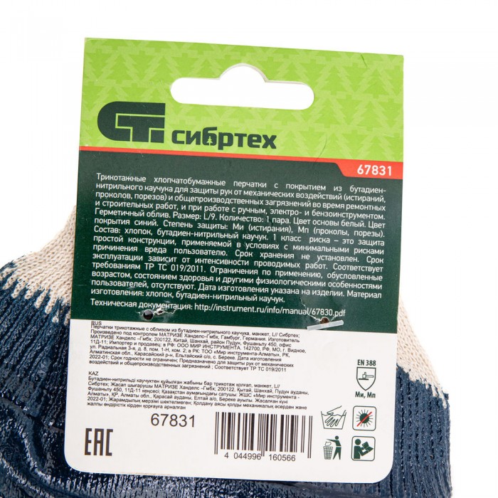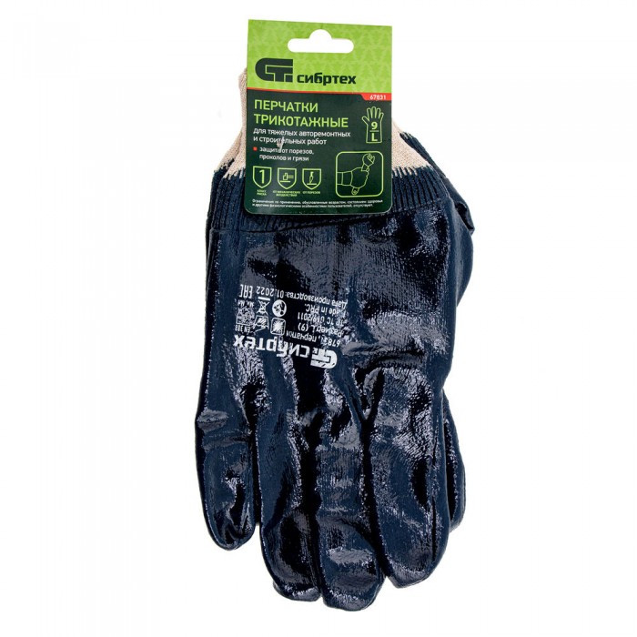 Перчатки трикотажные с обливом из бутадиен-нитрильного каучука, манжет, L Сибртех (67831)