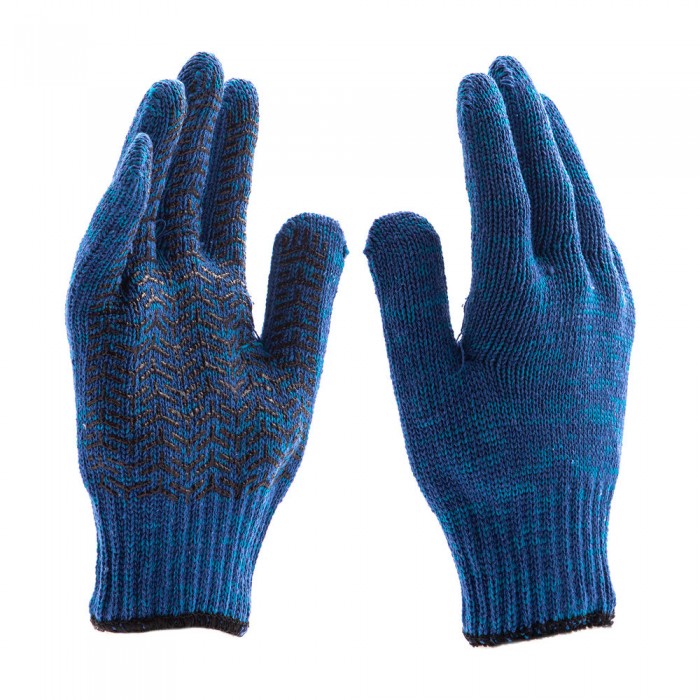 Перчатки трикотажные усиленные, гелевое ПВХ-покрытие, 7 класс, синие Сибртех (68183)