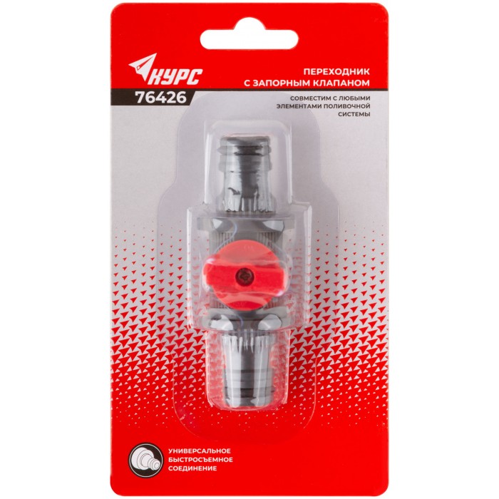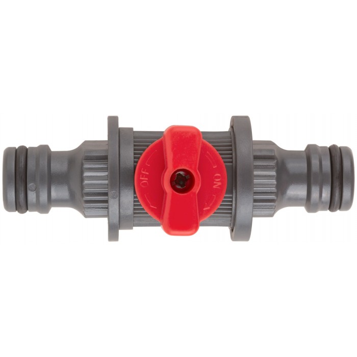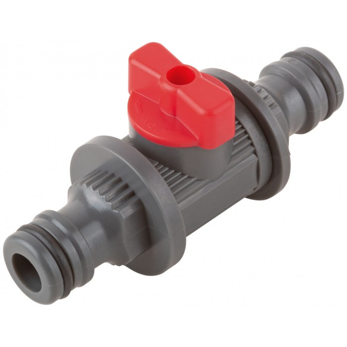 Для соединения элементов поливочной системы, имеющих на концах быстросъемными соединители. Запорный клапан для регулировки напора воды. Материал: ABS пластик. Упаковка: блистер.