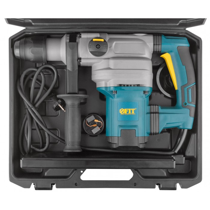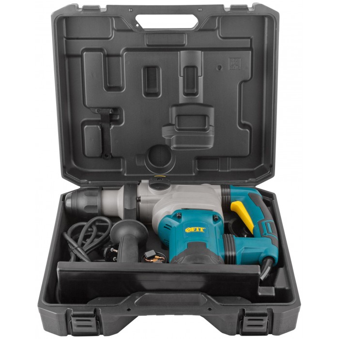 1400 Вт; 0-520 об/мин; 0-4100 уд/мин; 9 Дж; 6,1А; 40 мм; 6,65 кг; кейс. Металлический корпус редуктора, два режима работы (сверление с ударом, долбление), режим поворота сменного инструмента, универсальный патрон SDS-MAX, электропневматическая функция удара, вертикальное расположение двигателя, регулировка частоты вращения, индикатор включения в сеть, демпфер ручки, защита от заклиниваня буров, резиновые вставки.