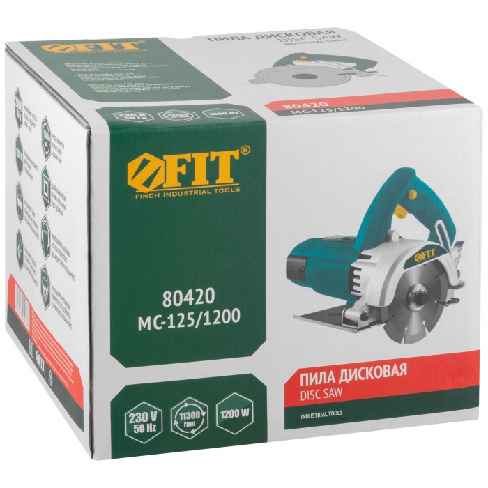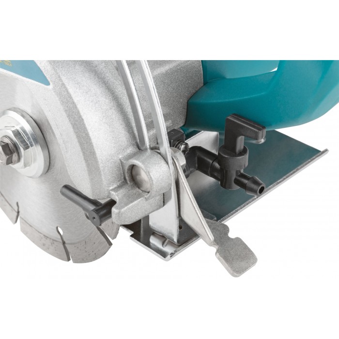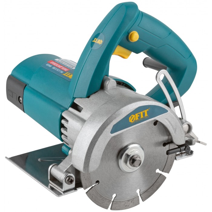 1200 Вт; 125/22 мм; 11300 об/мин; 40 мм; 5,3 A; 3,1кг; коробка. Водяное охлаждение места реза, регулируемая опорная плита, защита от поражения
