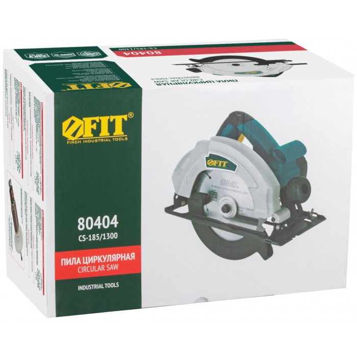 Пила дисковая 1300 Вт; 4500 об/мин; 185/20 мм; 4,4 кг; жел. опора; рез. накл.; блок шпинд.; коробка (80404)