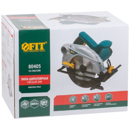 Пила дисковая 1300 Вт; 4700 об/мин; 190/20 мм; 4,0 кг; жел. опора; рез. накл.; блок шпинд.; коробка (80405)
