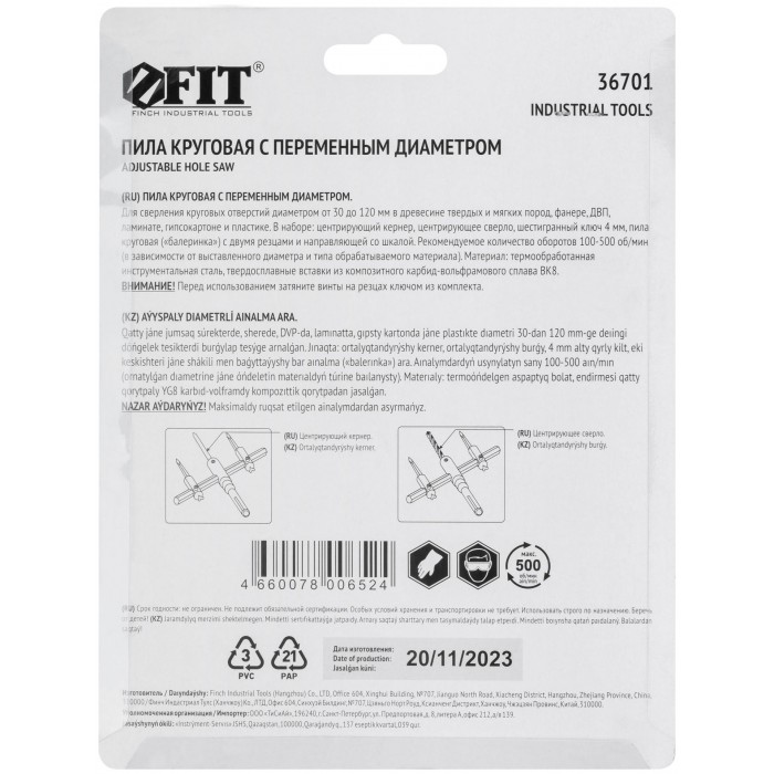 ''Балеринка'' Для высверливания отверстий в гипсокартоне, дереве. С регулируемым диаметром. Материал: инструментальная сталь, резцы из усиленной легированной инструментальной стали с твердосплавными вставками.