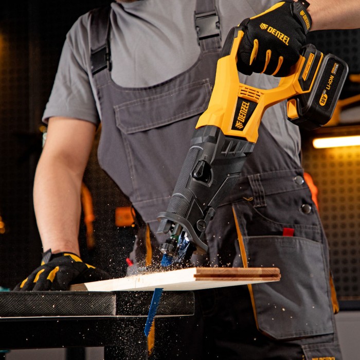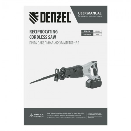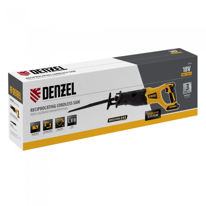 Пила сабельная аккумуляторная бесщет BRC-120-0, 18В Li-Ion Denzel (28461)
