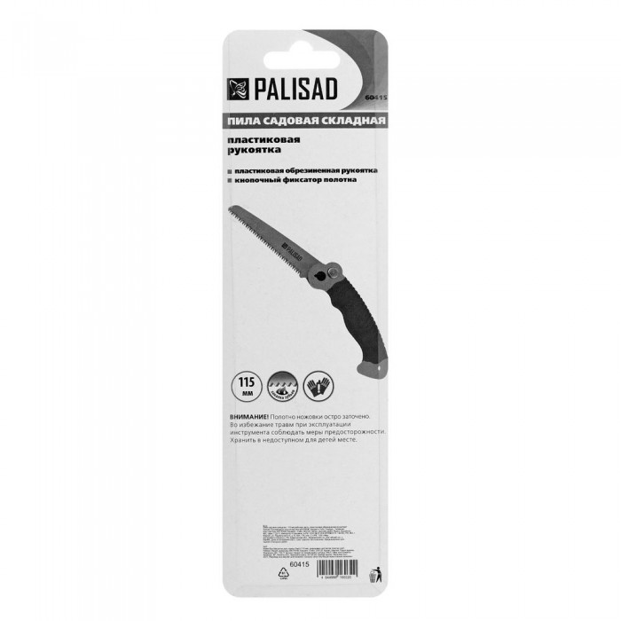 Пила садовая складная, 115 мм рабочая часть, пластиковая обрезиненная рукоятка, Palisad (60415)