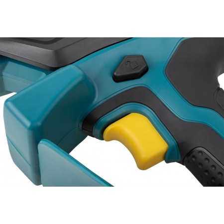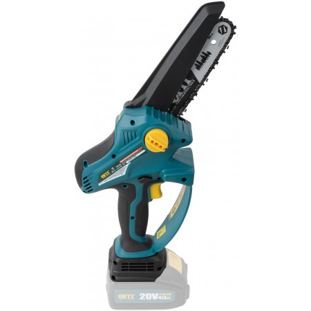 20 В; 7,5 м/сек; 6000 об/мин; шина 150 мм (6''); 40Zмл; 1,2 кг; коробка. Бесщеточный двигатель, автоматическая система смазки пильной цепи, дополнительная кнопка включения с индикатором, объем масляного бака 40 мл, блокировка включения, автоматический натяжитель цепи, бесключевой доступ к шине и цепи, электрический тормоз двигателя, подпружиненный защитный кожух, протектор для защиты рук, резиновые вставки.