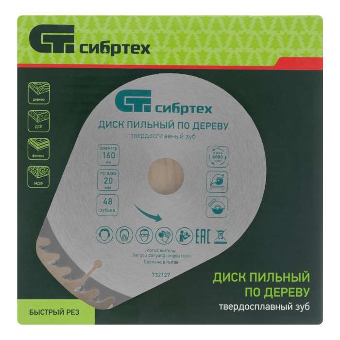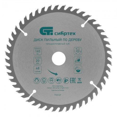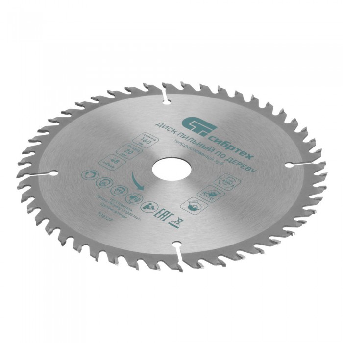 Пильный диск по дереву, 160 х 20 мм, 48 зуба, кольцо 16/20 Сибртех (732127)