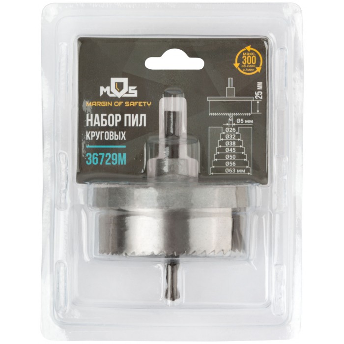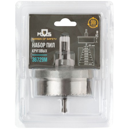 Каленый зуб. Для высверливания отверстий в древесине твердых и мягких пород, ДСП и фанере. В наборе 7 пил круговых: 26, 32, 38, 45, 50, 56, 63 мм. Материал: инструментальная сталь. Упаковка: двойной блистер.