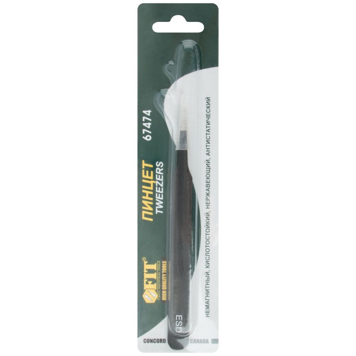 Пинцет прецизионный, антистатический, нержав.сталь, пластик.покрытие, Профи тип D (120 х 9 х 2 мм) (67474)